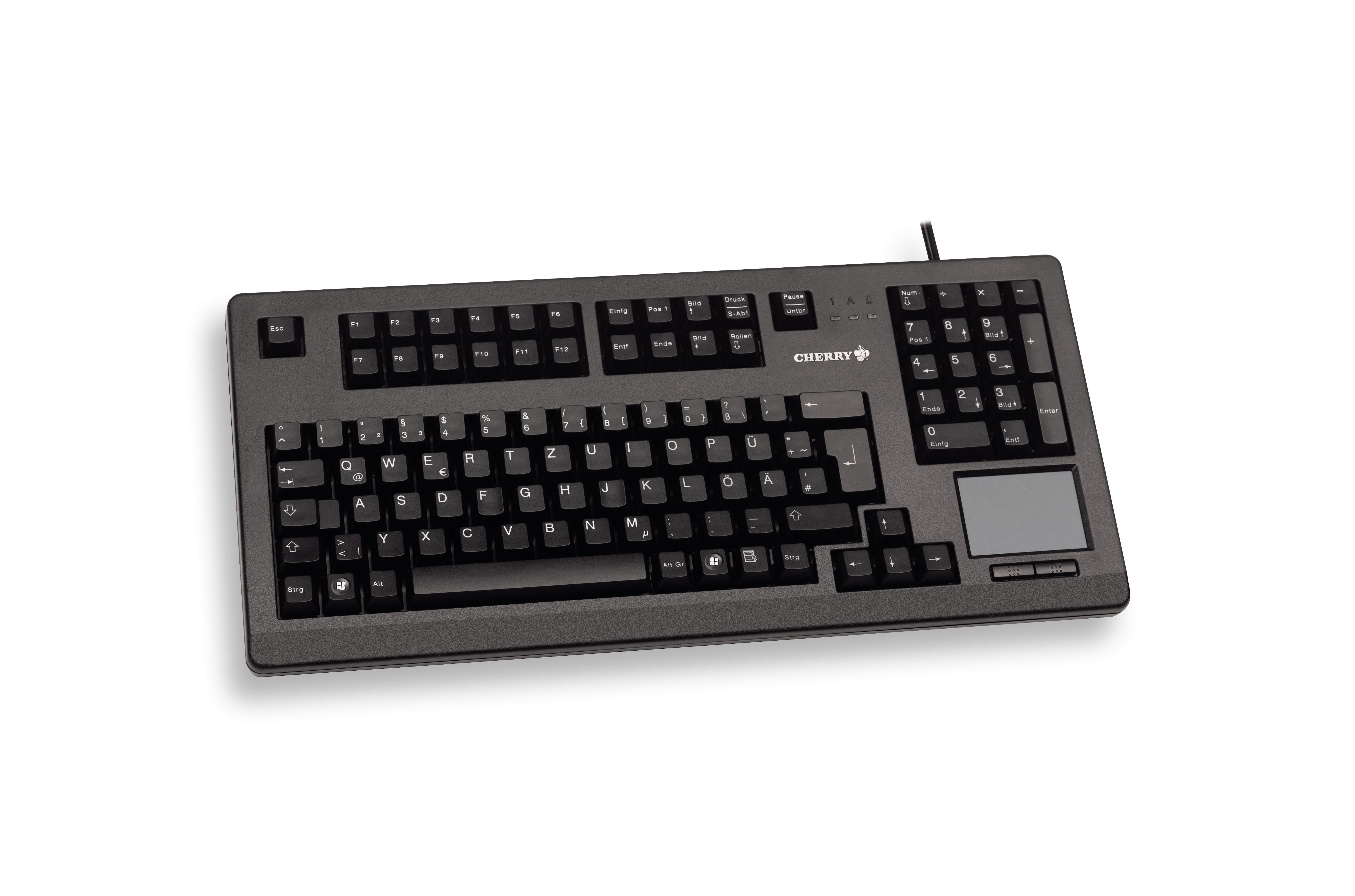 CHERRY TouchBoard G80-11900 Kabelgebundene Tastatur mit Touchpad, Schwarz, USB (QWERTZ - DE). Tastatur Formfaktor: Volle Größe (100%). Tastatur-Stil: Gerade. Übertragungstechnik: Kabelgebunden, Geräteschnittstelle: USB, Tastatur-Switch: Mechanischer Switch, Tastaturaufbau: QWERTZ, Tastatur - Tastenanzahl: 105. Kabellänge: 1,75 m. Empfohlene Nutzung: Universal. Produktfarbe: Schwarz