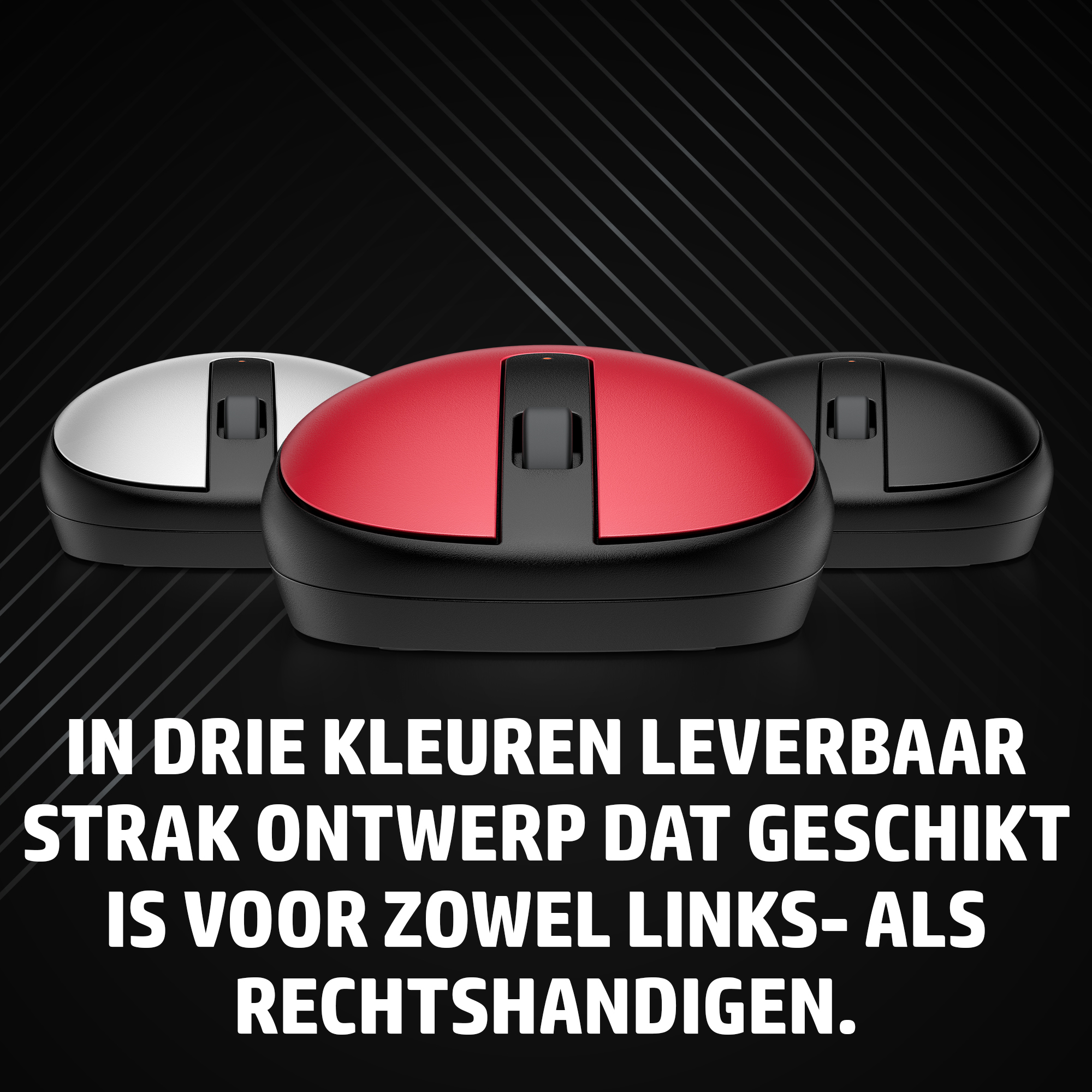 Schlankes, beidhändiges Design. Wähle aus drei stilvollen Farben aus: Schwarz, Rot oder Silber. Sie verfügt auch über drei Tasten und ein Scrollrad.