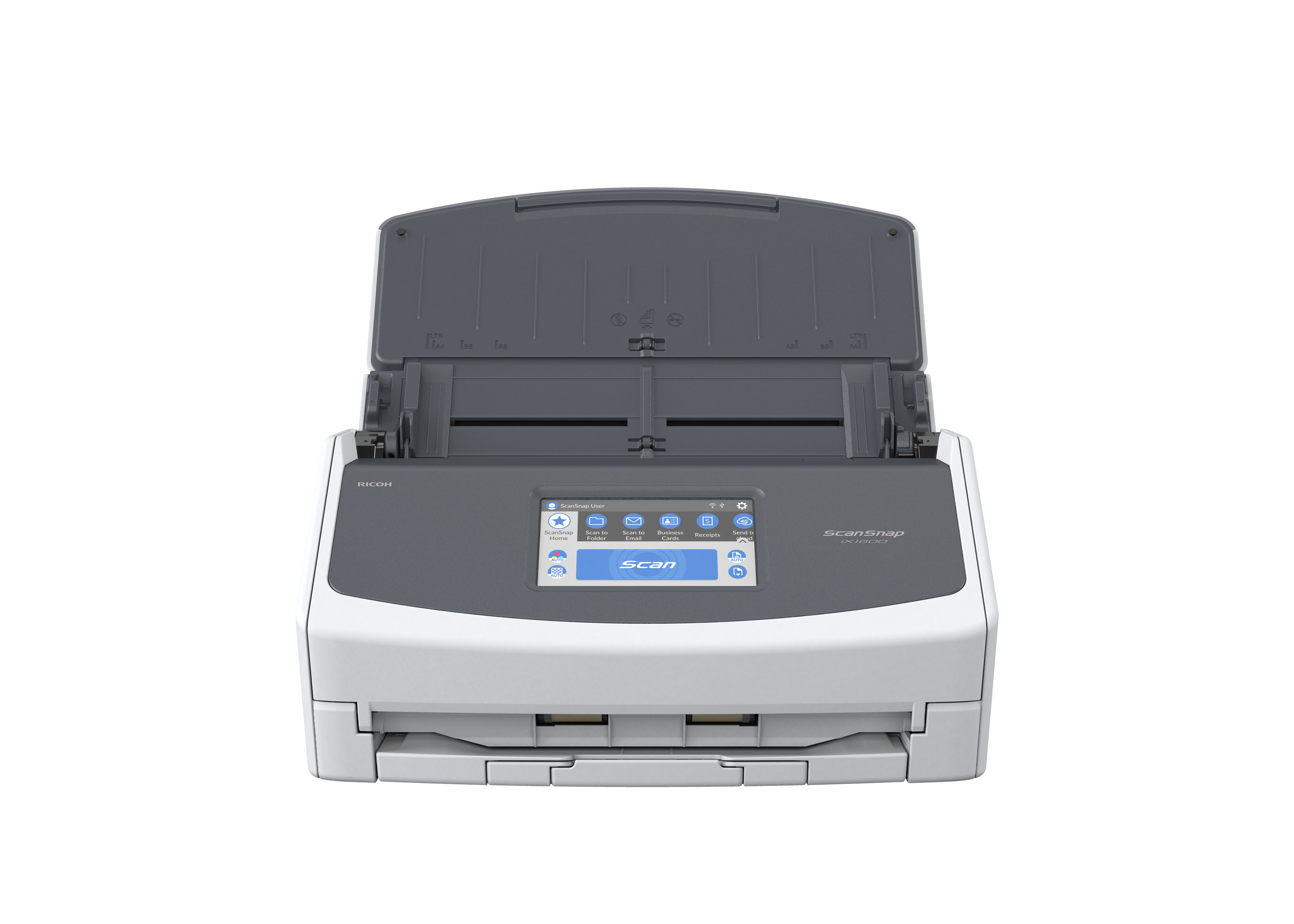 Ricoh ScanSnap iX1600. Maximale Scan-Abmessung: 216 x 360 mm, Optische Scan-Auflösung: 600 x 600 DPI, ADF-Scangeschwindigkeit (s/w, A4): 40 Seiten pro Minute. Scanner-Typ: ADF + Scanner mit manueller Zuführung, Produktfarbe: Weiß, Display: TFT. Sensor-Typ: Colour CIS, Lichtquelle: RGB-LED, Scanner-Dateiformate: JPG, PDF. Kapazität der Papiereingabe (Standard): 50 Blätter. Maximale Papiergröße der ISO A-Serie: A4, Unterstützte Scan-Medientypen: Visitenkarte, Post Card(JPN), ISO-A-Formate (A0...A9): A3, A4, A5